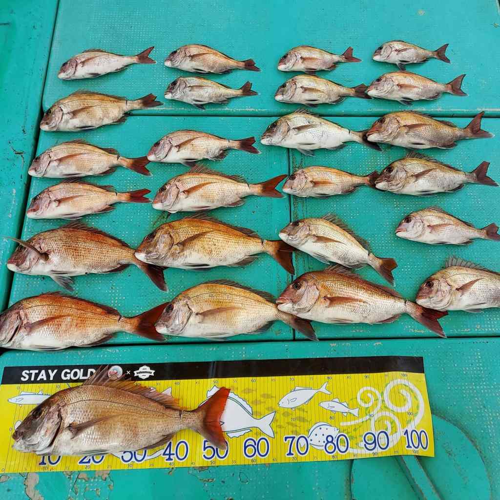 2/10(木)タイラバ 投稿者:GOLD STAY2022-02-10カテゴリー:釣果情報 お客様2名で 爆釣となりました 明石海峡付近でもサイズ良いの入ってきました これは小潮周りでも釣れそうなので 楽しみです 本日は海遊さんの赤黒ゼブラが釣れまくり お客様2名で 船中25匹 竿頭16 次点9 最大54cm 竿頭16 2名で爆釣 海遊赤黒 平均サイズも良く 海遊オレンジでも いいね 読み込み中…