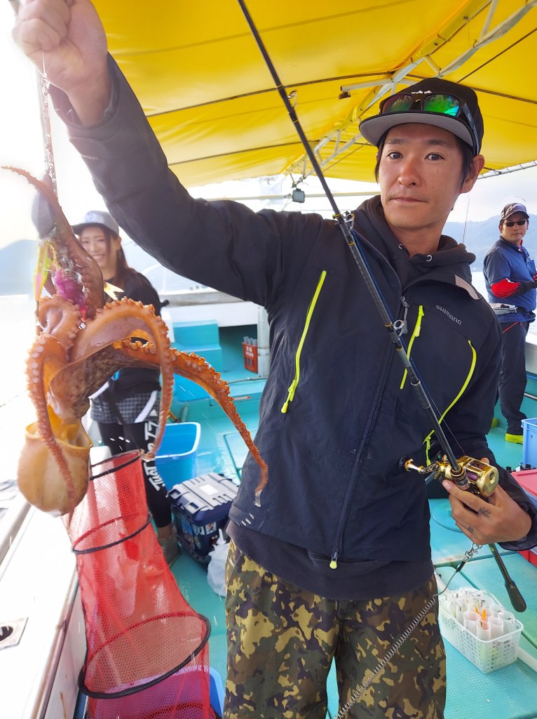 5/26(木)タコ 投稿者:GOLD STAY2022-05-26カテゴリー:釣果情報 朝から中サイズ多く お持ち帰り重量はかなり良かったです ほとんどの方が10匹前後と サイズ、数ともに揃ってくれました 本日 竿頭15匹 二桁安打複数 平均8~9匹前後 最大は1.3キロ位でした 最近は白がワンポイントで効いてます 定番は黄色、緑 それに白やピンクが効く時間帯あるので ローテーションで釣果上がります いいね 読み込み中…