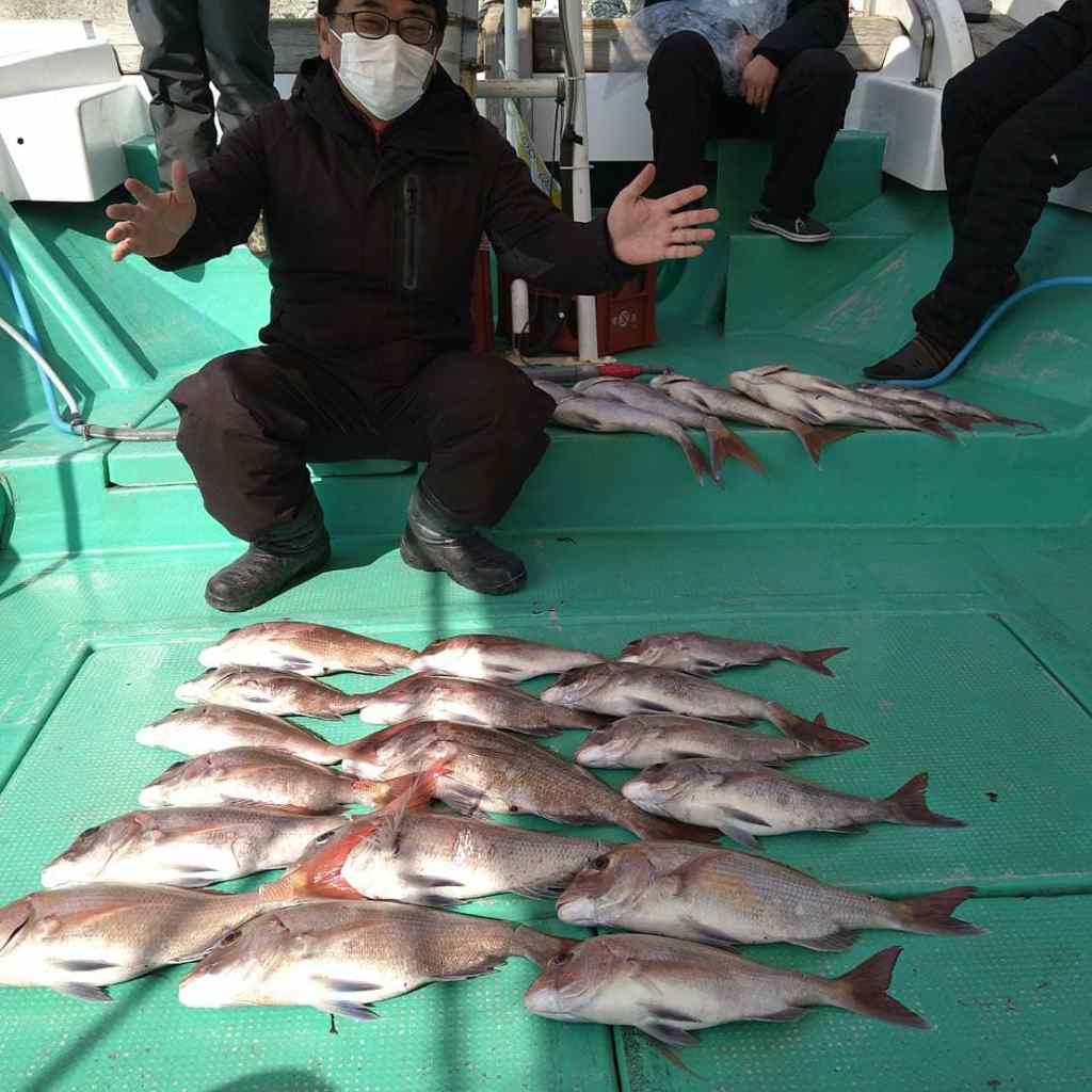 1/31(月)タイラバ 本日高活性 大サイズ揃いで タイ2~竿頭7 船中27 最大60cm ネレイドさんの 極細ブラックゴールド最高でした 竿頭7 最大60 最低サイズ40オーバー いいね 読み込み中…