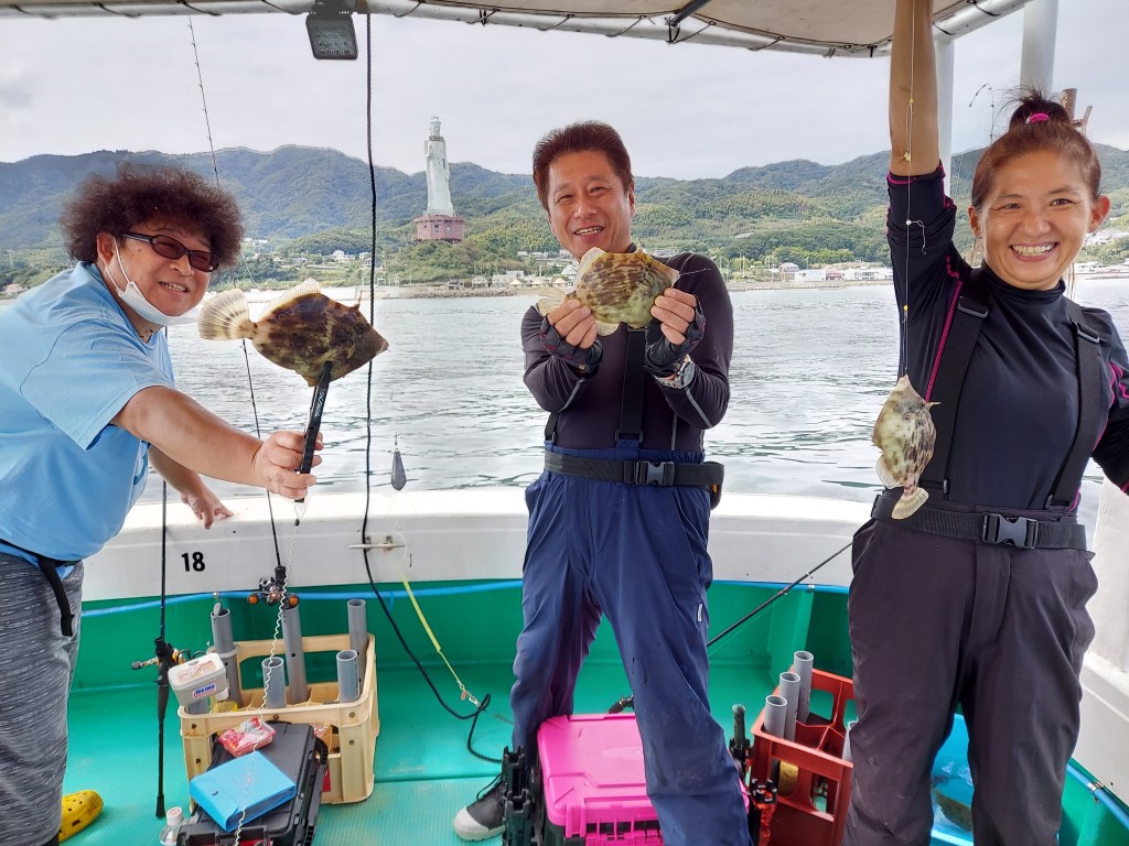 10/13(水)カワハギ+タイラバ 2本立てでした カワハギはボチボチつれました タイラバは少し厳しかったです カワハギ2~竿頭8 タイ0~竿頭2 50オーバーのタイ上がりました 底をスローで丁寧に巻いてる方が当たり多かったようです。本日は弱波動 いいね 読み込み中…