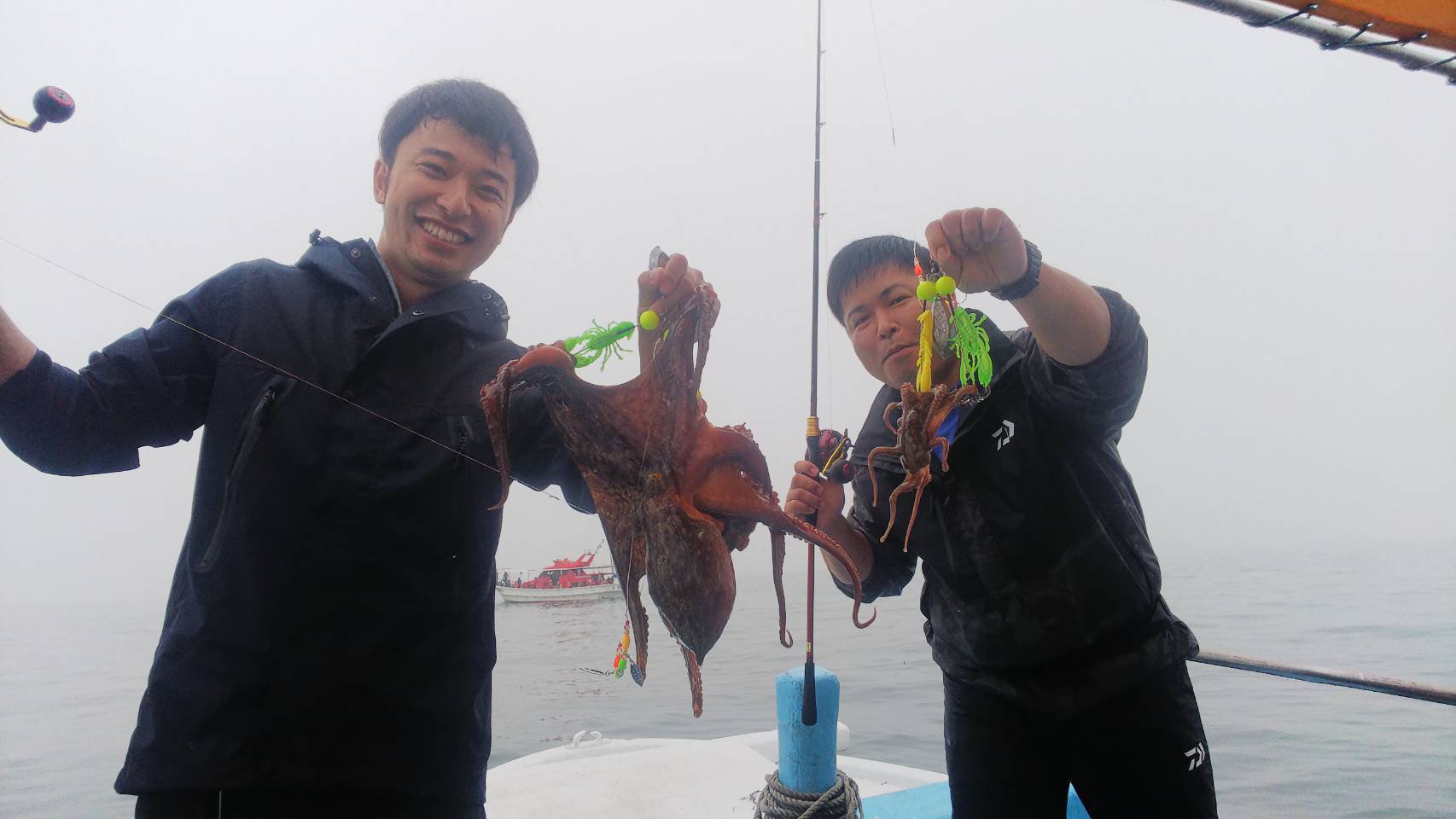 7/5タコ 本日釣果 ほぼ30匹オーバー~竿頭70匹 ワカメ場では船長がお知らせしますので エギがおすすめ、デビルクラッカーはワカメをよく引っかけてきます チビッ子メインになります スッテが動き良くすぐに抱きついてきてます エサを巻いてる方が良く釣れてます 背油、さんまお勧めです デカタコも狙いに行きます 3.5キロ出ました いいね 読み込み中…